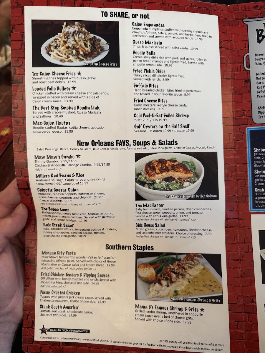 Introducing the Menu at BB's Tex-Orleans - Houston